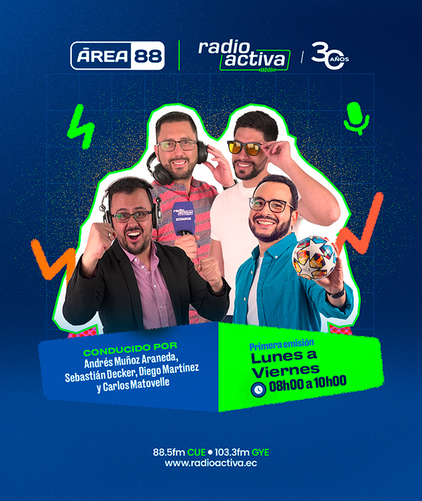 Andrés Muñoz Araneda, Sebastián Decker, Diego Martínez y Carlos Matovelle hacen Área 88: una combinación precisa de información deportiva y una que otra cosa más.